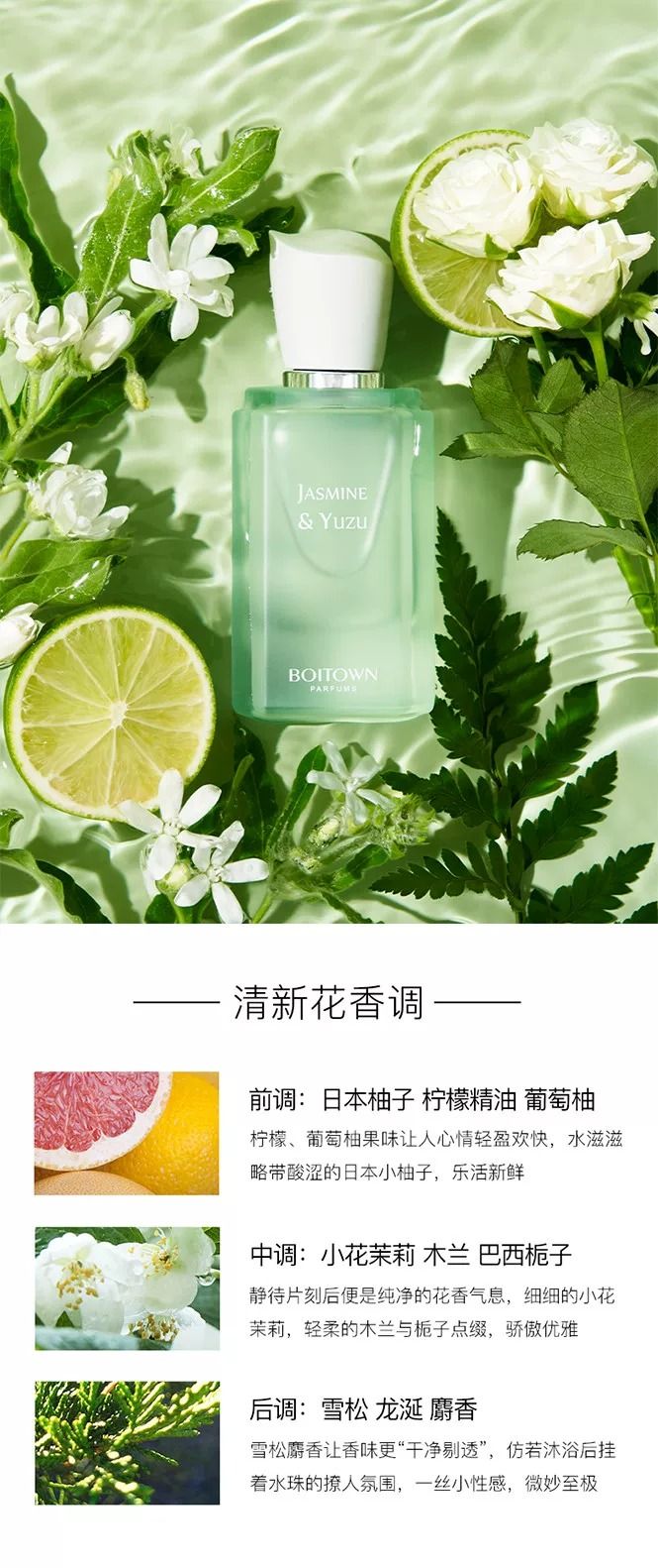 - 花果香调茉莉白柚香水+2ml小样*2+护手霜60ml